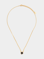 Expertly crafted in 14ct Gold Plated Brass Base Metal, this elegant set includes a black Clover pendant on a 40+5cm chain and matching stud earrings glittering with pavé set Cubic Zirconia.