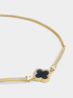Expertly crafted in 14ct Gold Plated Brass Base Metal, this stylish slider bracelet features black enamel clover pendant glittering with pavé set Cubic Zirconia.