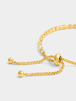 Expertly crafted in 14ct Gold Plated Brass Base Metal, this elegant slider bracelet features a glittering voyage of round-cut and baguette-cut Cubic Zirconia.