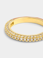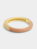 Expertly crafted in 14ct Gold Plated Brass Base Metal, this stylish ring is enhanced by blush pink enamel and glitters with pavé set Cubic Zirconia.