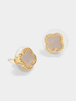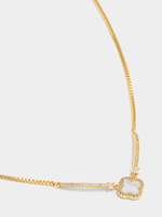 Expertly crafted in 14ct Gold Plated Brass Base Metal, this elegant set includes a Clover pendant inlaid with Mother Of Pearl on a 40+5cm chain and matching stud earrings glittering with pavé set Cubic Zirconia.