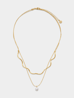 Expertly crafted in 14ct Gold Plated Brass Base Metal, this elegant 43cm layered choker necklace features a lustrous Pearl.