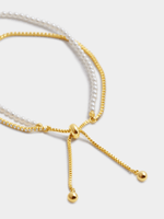 Expertly crafted in 14ct Gold Plated Brass Base Metal, this glamorous 25cm slider bracelet features lustrous Pearls and glitters with pavé set Cubic Zirconia.