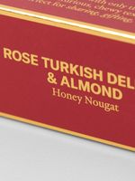 1701 Rose Turkish Delight & Almond Honey Nougat bars make a delicious gift. Beautifully packaged with a ribbon detail, this handmade bar includes tasty pieces of rose Turkish delight and almonds embedded in perfectly chewy nougat.