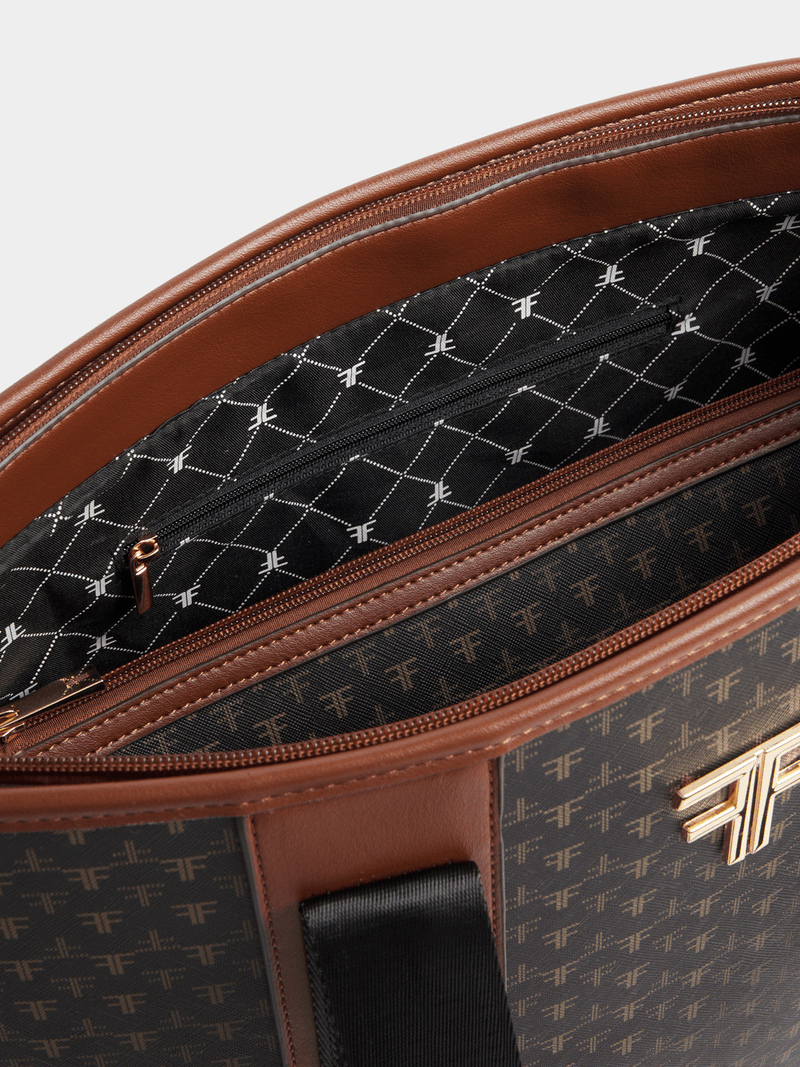 Our 2-in-1 Shopper With Laptop Bag has your work style sorted. This classic shopper features a metal FF logo and a zip closure and includes a matching laptop bag for a chic-coordinated look.