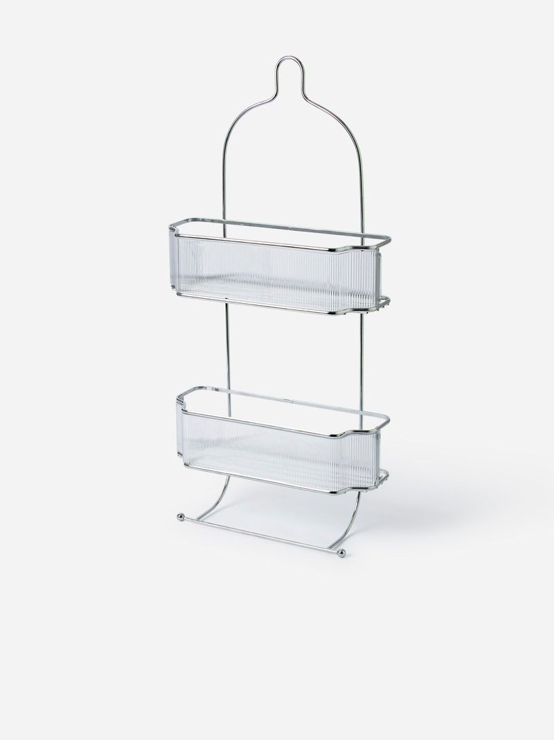 Organise your bathroom with our 2-tier Shower Caddy. Designed to hang on a hook or over a shower tap, this caddy has two seperate sections with clear high edges to securely hold your bottles, tubes and tubs. Hang cloths or loofahs on the rod below.