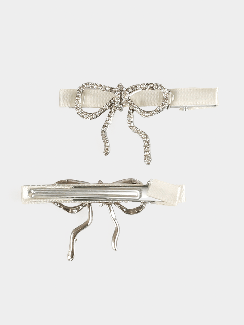 Home/Kids/Girls/Accessories/Girl's Silver 2-Pack Diamante Bow Hair Clips