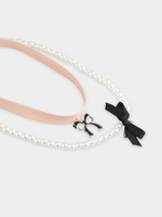 Elevate any outfit with our 2-pack pearl necklace and bow chocker set. This set adds a touch of elegance to your look. Perfect for adding a chic touch to her ensemble, these pieces are a must-have for her jewelry collection.
