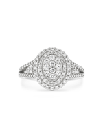 A shimmering 9ct Gold ring in an oval design expertly set within 0.5ct of radiant Diamonds.
