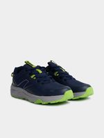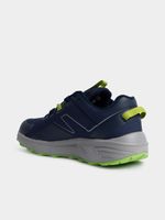 The Hi-Tec Tempo Trail Jnr is designed for active kids, offering durability and comfort. It features an impact-absorbing midsole, a padded collar and tongue, and a soft mesh lining for all-day comfort all day. A removable footbed provides underfoot cushioning, adaptable to growing feet. The speed lace system offers an easy fit. Welded toe protection adds an extra layer of protection, and the M-D Traction outsole ensures both durability and grip.