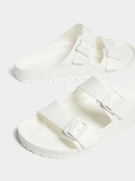 The legendary two-strap design from BIRKENSTOCK - the Arizona. Modeled on the cork original, this sandal is made from ultra lightweight and highly flexible EVA. These sandals are shock absorbing, waterproof, and skin-friendly. Wear them at the beach, in the garden, or around the gym and after workouts. It's the perfect addition to your classic BIRKENSTOCK sandals.(Supplier Style:129441/1)