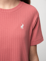 Introducing the vibrant Kids Coral Gianna Rib Dress. Made from a comfy cotton blend with a touch of elastane for stretch. Features a classic polo collar and ribbed detailing. Crafted with care in Mauritius. Easy care instructions included. Perfect for everyday wear!