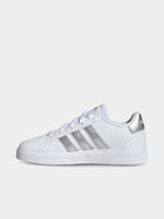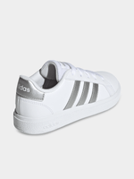 Step up their style with the junior adidas Grand Court 2.0 sneaker in white/silver. Made from durable PU fabric, these sneakers are perfect for everyday wear.These sneakers are a must-have for any kid on the go. Reward their feet with the comfort and style of adidas.