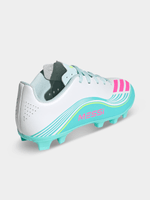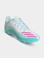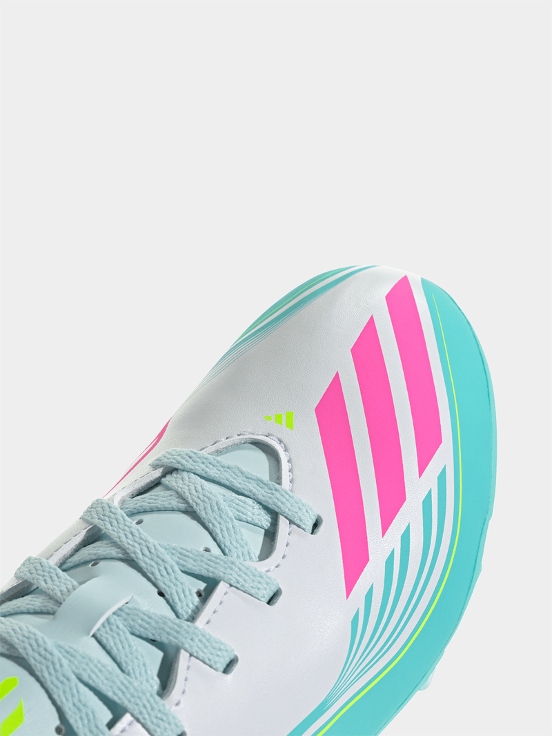 For young football fans who dream of emulating their idol, the F50 Messi Club Firm Ground / Multi Ground Football Boots are tailored to Messi’s preferences in fit and design. With a soft, lightweight, feel, these boots unlock game-changing speed on the pitch. The lightweight upper offers support and cushioning, while the synthetic floating tongue includes punch holes for breathability. The FG/MG tooling provides reliable traction on both natural grass pitches and artificial grass. With versatile grip and adjustable laces for a secure fit, young athletes can wear them with confidence. With iconic branding, including the Messi logo on the heel and F50 logo on the tongue, these boots are an authentic tribute to the legendary player.