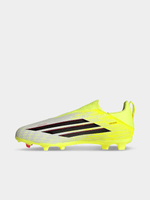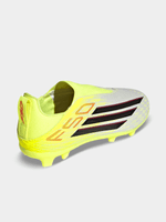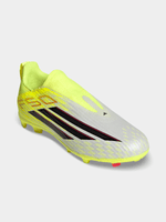 When it comes to football, speed and precision are key. The F50 League Laceless Firm Ground and Multi Ground Football Boots are designed to give young players the edge they look for on the pitch. With a refreshed upper graphic and a lightweight sensation, these boots are engineered to support game-changing speed. The Fiberskin Upper features strategically placed 3D lines, supporting ball touch and providing a fast visual. The SprintGrid print features a textured 2D mudguard, emulating design elements from pinnacle models, while heel webbing provides kids with ease of entry into the slip-on laceless design. The SprintPlate 360 outsole features TPU-based tooling with F50 design DNA. Meanwhile, the boot’s comfortable knit collar and TPU backing offer foot lockdown at higher speeds. Watch your child experience the thrill of football with these boots, where sports heritage meets innovation. Let adidas help your child unleash their full potential on the pitch.