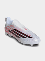 The F50 League Laceless Firm Ground Football Boots are designed for young football enthusiasts. The laceless design of these boots offers convenience, while the regular fit makes them a go-to choice for an active day. The Sprintplate 360 offers TPU based tooling with F50 design dna and outsole coring from pinnacle price points. These boots feature a Fiberskin upper. Engineered material package offering support and soft feel with strategically placed 3D lines. The Sprintgrid contains 2D print lines for fast visual, emulating the design element from pinnacle price points. adidas has crafted these boots with a focus on comfort and ease of use. Let your child experience the thrill of the game with this pair, where innovation meets style.