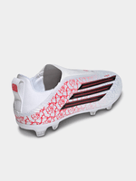 The F50 League Laceless Firm Ground Football Boots are designed for young football enthusiasts. The laceless design of these boots offers convenience, while the regular fit makes them a go-to choice for an active day. The Sprintplate 360 offers TPU based tooling with F50 design dna and outsole coring from pinnacle price points. These boots feature a Fiberskin upper. Engineered material package offering support and soft feel with strategically placed 3D lines. The Sprintgrid contains 2D print lines for fast visual, emulating the design element from pinnacle price points. adidas has crafted these boots with a focus on comfort and ease of use. Let your child experience the thrill of the game with this pair, where innovation meets style.