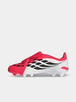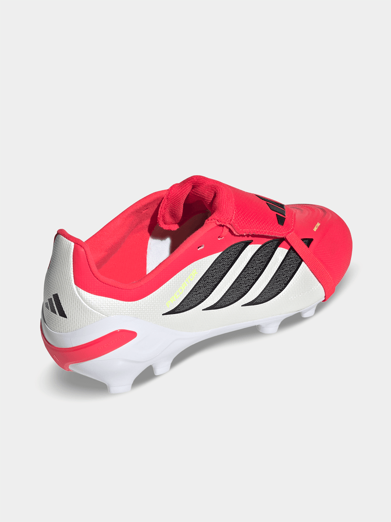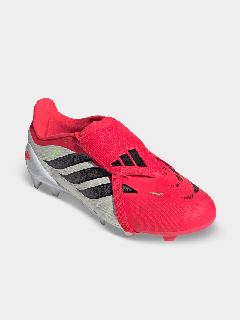 The Predator League Fold-Over Tongue Firm Ground Football Boots are designed to empower young players to take control on the pitch. With innovative mesh and striking technology, these boots are crafted to help kids find the goal with confidence. Nanostrike: reimagined synergy between fit and grip tech. Mesh upper built for extra softness and lightness with an integrated haptic overlay for enhanced striking precision. Strikeframe: lightweight full-length plate with optimal traction for goal scoring. Powerspine: iconic predator tech for midfoot stability to enable stronger striking. The iconic Predator element, the fold-over tongue, creates a smooth striking surface for comfort and precision with every move. With adidas, young athletes are equipped to perform at their best.