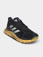 A solid platform for perfecting your game. These juniors' field hockey shoes hug your foot to keep you stable and comfortable while you hone your skills. EVA in the midsole adds whistle-to-whistle comfort, while synthetic overlays defend you from impacts. A rubber outsole grips the pitch for quick reactions.