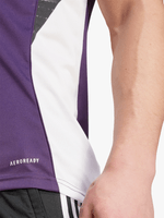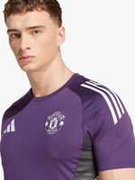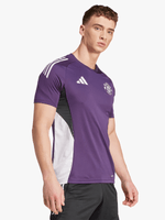 Sporting colours inspired by Manchester United's away shirt, this adidas training jersey is part of the kit the players wear when preparing for league games. Its soft interlock fabric, slim fit and moisture-managing AEROREADY combine for comfortable play. A heat-applied club crest supplies football inspiration while keeping things lightweight.