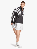 Channel the spirit of the past while running in the present in this adidas Adizero running jacket. Lightweight ripstop fabric with underarm vent panels offers versatile performance for warm-ups and cool-downs. Reflective details add low-light visibility and a durable water-repellent treatment resists damp conditions.