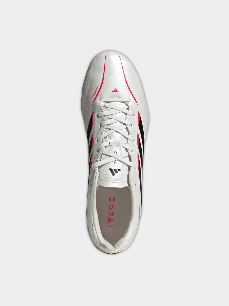 The COPA Pure IV League Firm Ground Football Boots have been crafted with comfort, ball feel, and fit at the forefront. They offer a look that mixes classic and modern for players and enthusiasts alike. These boots have a regular fit, adjustable lace closure, and an outsole designed for optimal traction on firm ground. FUSIONFEEL technology provides impressive comfort without compromising ball feel. With semi-conical studs offering traction during rotation, you can perform at the top of your game. adidas blends heritage and innovation so each time you kick the ball you demonstrate both your skill and style.