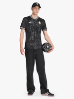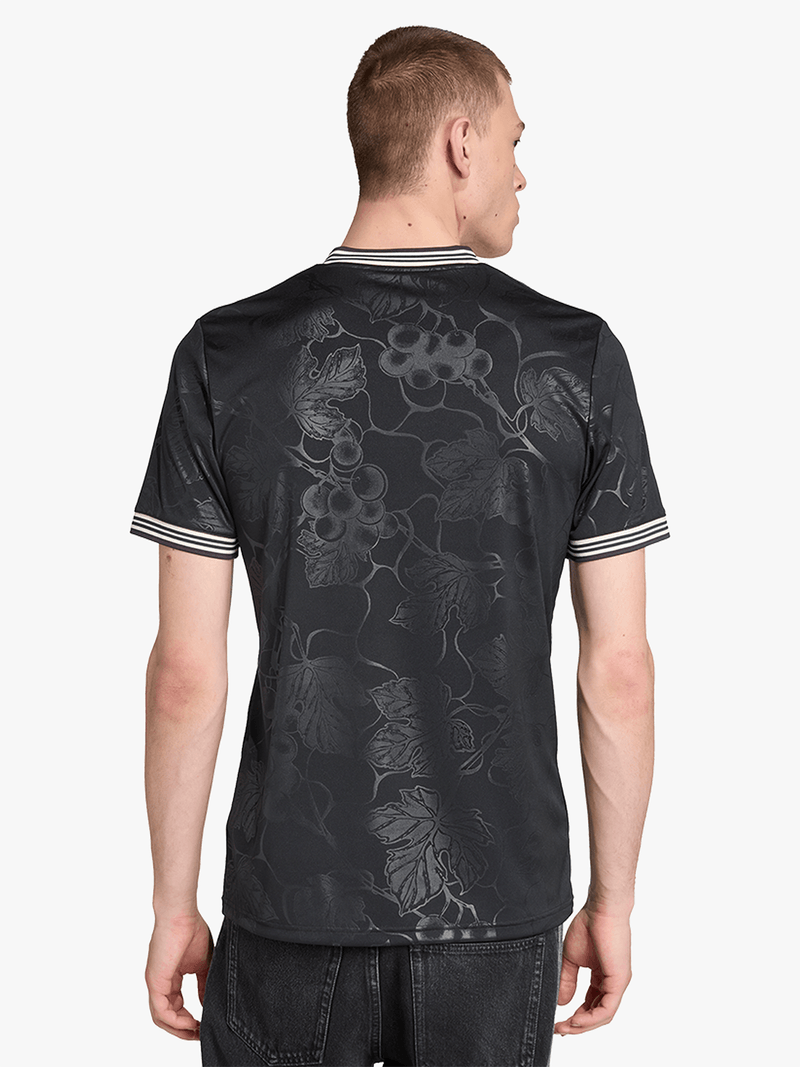 Raise a glass to your football heroes in a Juventus jersey that pays tribute to Piedmont's wine-making tradition. Standing out from black colours, an embroidered adidas Trefoil and classic club badge join subtle, vineyard-inspired graphics to produce an understated, elegant look. Created to keep fans comfortable and relaxed, this shirt features soft fabric and moisture-managing AEROREADY.