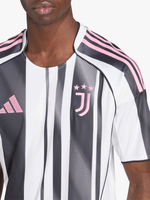 Football tradition with a twist. This adidas Juventus home jersey plays with the club's famous stripes to produce a design that really catches the eye. Created to keep fans comfortable, it teams moisture-managing AEROREADY with smooth interlock fabric. Finished in the club's timeless pink colours, an embroidered badge flashes your fandom.