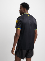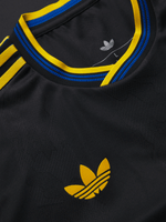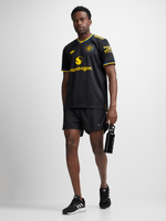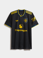 Part of a clean, classic adidas kit that will transport fans to a golden era. Finished in black, this Manchester United authentic third jersey conjures some of the club's most iconic players and memorable away performances. A yellow Trefoil and club badge stand out on the chest while more subtle, devilish details are woven into the fabric. Lightweight and focused on performance, this eye-catching shirt was made to create new football memories.
