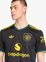 Part of a clean, classic adidas kit that will transport fans to a golden era. Finished in black, this Manchester United third jersey conjures some of the club's most iconic players and memorable away performances. A yellow Trefoil and club badge stand out on the chest while more subtle, devilish details are woven into the fabric. Moisture-managing AEROREADY keeps fans comfortable while their team create new memories.