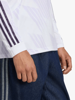 Ice-cold Manchester United style finds a fresh look. It won't take fans long to see the influence of the club's early-'90s adidas snowflake kit on this jersey. What are new, though, are those flashes of purple and lilac, and the metallic finish that gives the red devil badge extra lustre. This comfortable long sleeve shirt employs moisture-managing AEROREADY so fans can stay focused on the football.