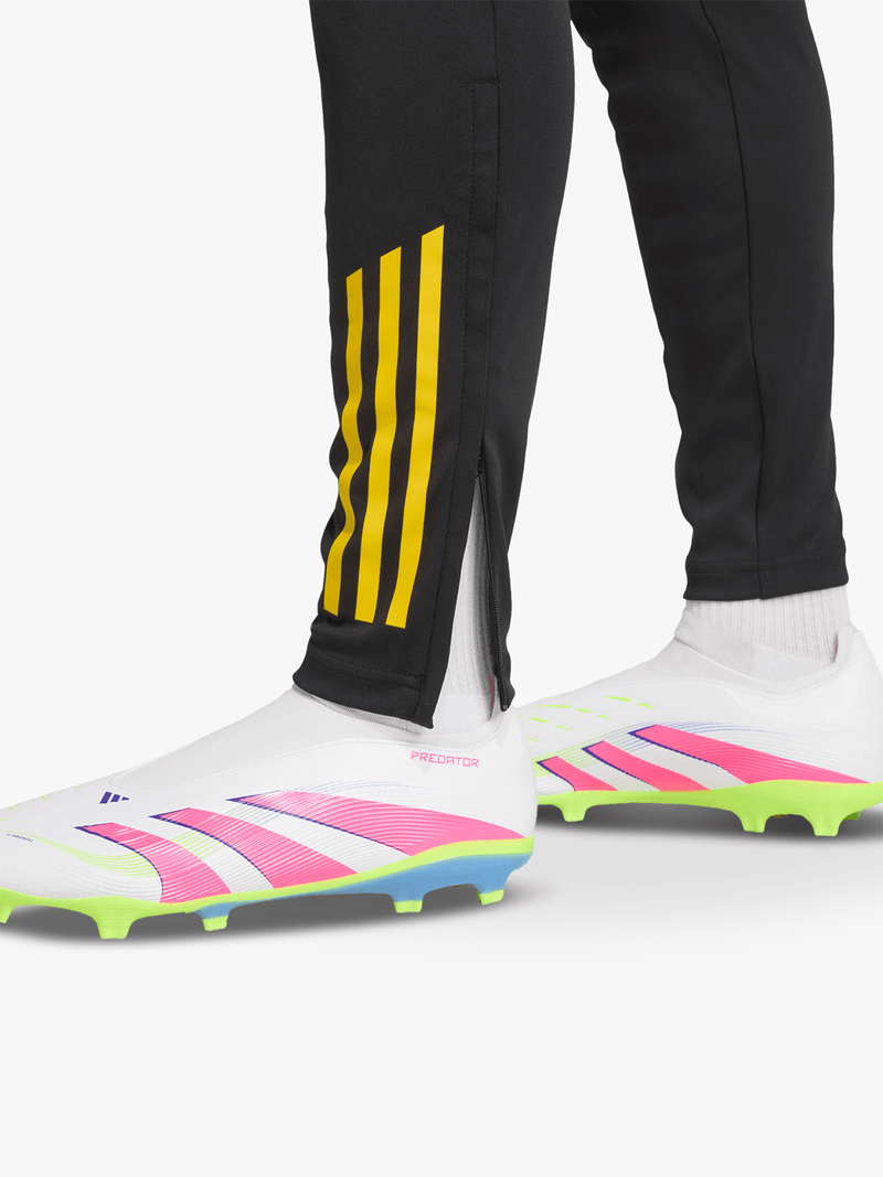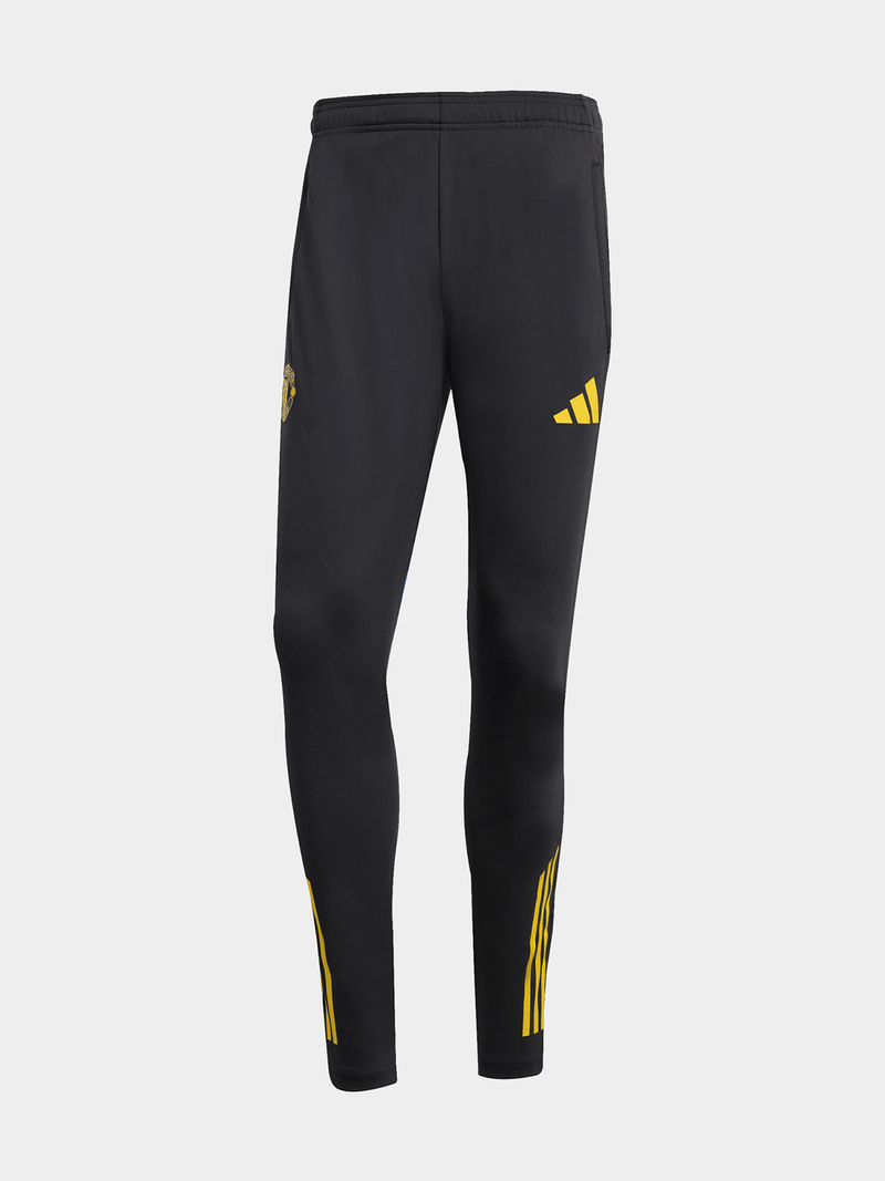 Bearing the black and yellow colours of Manchester United's third shirt, these adidas pants belong to the training kit the club's players wear before big matches. They have a slim fit and a stretchy construction, which means they hug your body without restricting your movement. AEROREADY manages moisture to keep your football fresh.