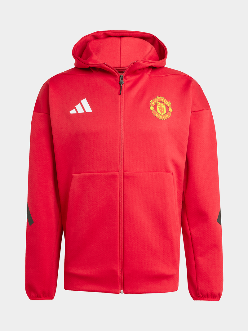 Always ready. Always united. This ADIDAS Z.N.E. football jacket is built to keep you focused during those all-important pre-match moments. Made from soft doubleknit fabric and equipped with a spacious hood, it will keep you comfortable in your club's colours. A "Theatre of dreams" sign-off pays tribute to Manchester United's famous home.