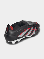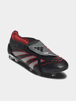 Adidas Football's latest edition of the current Predator Elite delivers a fresh spin on the aforementioned color trifecta dubbed "BSR" (Black/Silver/Red). Shimmering "Silver Metallic" replaces shades of white that have historically taken on profile 3-Stripes, as well as parts of the tongue, hind-foot, and plate underfoot. Est. 1994 text is printed onto the lateral collar, highlighting the franchise's origins; the same branding lands on the footbed. STRIKESKIN technology reprises its role across the medial forefoot and fold-over tongue, boasting eye-catching "Vivid Red" flair.