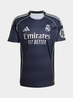 As Real Madrid's world-famous stadium enters a brand-new era, this adidas away football jersey pays tribute to magical nights at the Santiago Bernabéu. Its moiré effect print and silver metallic details combine to mimic the gleaming facade of the renovated arena. Moisture-managing AEROREADY ensures fans feel home comforts when they're on the road with their team.