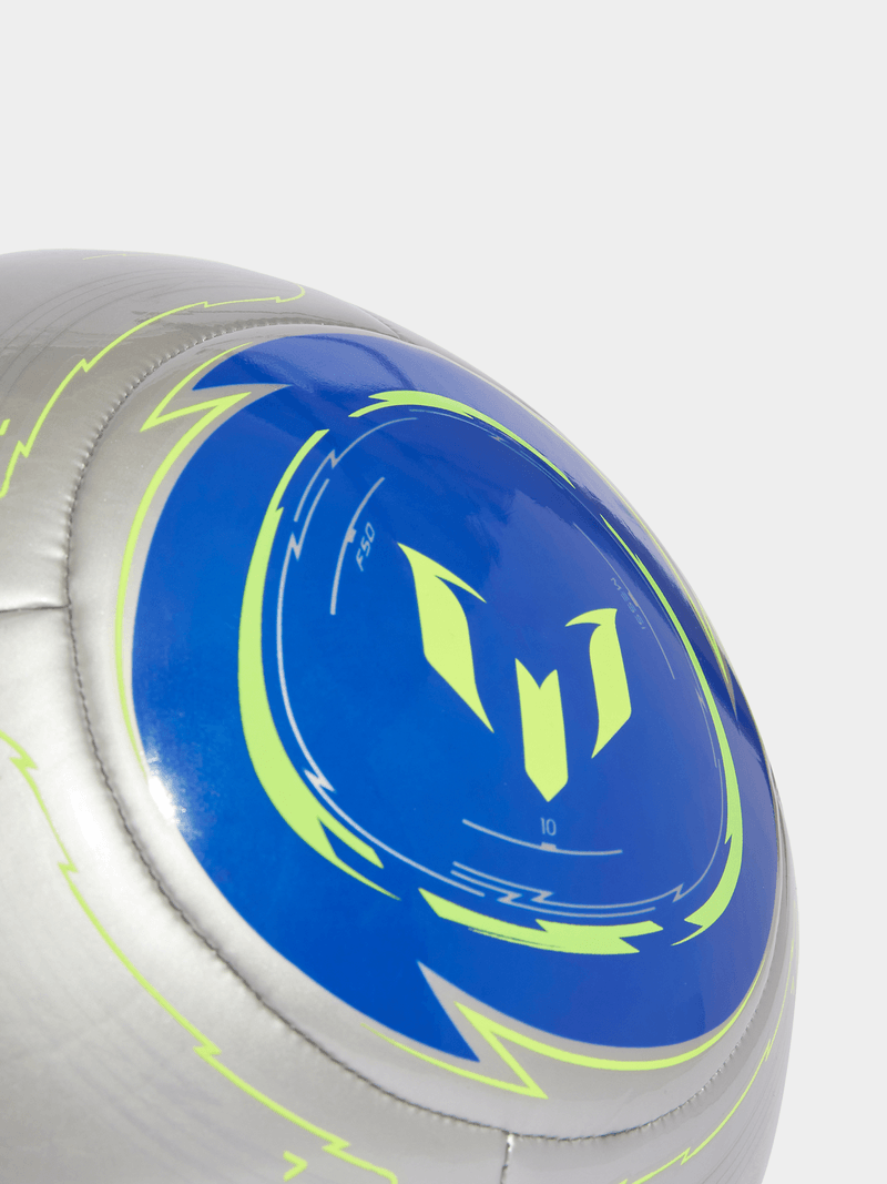 Show your pride in football's GOAT with an adidas Club ball designed for casual games. Detailed in yellow, a Messi logo and 3 Bar Logo really pop from the blue and silver base of this machine-stitched ball. Whether you're nutmegging defenders or curling free kicks, it will ensure you do it in style.