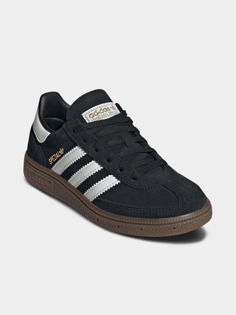 From blacktop to sidewalk, kids need shoes that can keep up. The adidas Handball Spezial is built for kids on the move. Scaled down for growing feet, these retro-inspired shoes bring big style in a small package. Their suede upper and gum rubber sole provide toughness from top to bottom, with grippy traction for all their running and playing. Serrated 3-Stripes, a double-stitched T-toe and classic Spezial branding finish off the look.(Supplier Style:JI2894_ARC)