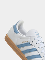 The adidas Samba is a true representation of 3-Stripes style. It's kicked its way from soccer pitches to skate parks since the 1950s, collecting a cohort of fans along the way. These infants' shoes bring back the glory of the original Samba. The smooth leather upper, suede toe cap and serrated 3-Stripes are all here, along with stretch laces that make them easy to slip on and off. The soft lining and flexible rubber outsole are tuned for growing feet.(Supplier Style:JQ3189)