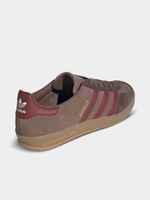 These adidas Gazelle Indoor shoes are built with a premium suede upper and accented with synthetic layers for easygoing all-day wear. Whether you're out exploring the city or simply relaxing at home, they provide a stylish, versatile option for any occasion. The signature gum rubber outsole, serrated 3-Stripes and Gazelle logo sign off on this vintage-inspired silhouette.(Supplier Style:JQ8398_ARC)