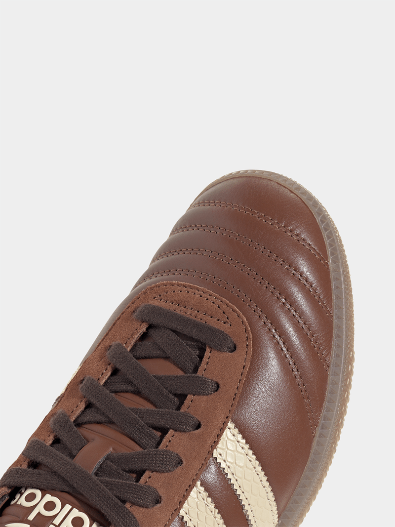 The adidas Samba shoes were introduced in the decades ago as an indoor soccer training shoe and soon moved outdoors to icy ground pitches. This pair carries that legacy into the present day. The leather upper, animal print-inspired debossed 3-Stripes and suede details are a nod to archival Samba style. The look is finished with a rubber outsole to keep you moving in comfort.(supplier Style:JR0962_ARC)