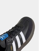 Introducing the Samba Kids Black/White Sneaker. Crafted with premium leather, these sneakers are perfect for any occasion. With a sporty design and comfortable fit, they are the go-to choice for active kids. Made with high-quality materials, these sneakers are built to last. Step up your style game with these trendy kicks. Supplier style (IE3678)