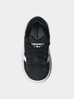 These adidas Campus 00s shoes for toddlers reimagine an icon for today's generation. The signature gum rubber sole grounds an updated leather and suede upper, cut slimmer and lower to the ground. Elastic laces promise slip-on ease to make getting dressed easy. All the retro details are still here — the iconic 3-Stripes, the classic Campus callout — they're just re-proportioned to fit modern life. When their look calls for a throwback vibe and fresh new vision, this pair delivers.(Supplier Style:JI4335)