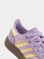 Although your little one's handball career may be a few years off, these infants' shoes from adidas will get them started on the right foot. The suede upper and gum rubber outsole are a nod to the Handball Spezial's indoor sports roots, while easy hook-and-loop straps make getting out the door a breeze. Comfortable and classic, these shoes provide everything growing feet need to explore the world.(Supplier Style:JQ0734)