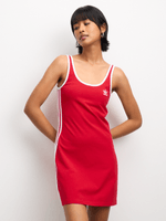 Step out in bold style with the Adidas Originals Women's 3s Better Scarlet Red Mini Dress. Featuring the iconic 3-Stripes and Trefoil logo, this sporty-casual dress combines comfort and street-ready flair. Perfect for everyday wear or casual outings. Supplier code_JL1339