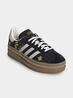 It wouldn't be a list of adidas' most iconic shoes without the Gazelle. First worn on indoor courts in the '70s, the suede shoe is gaining new fans to this day. Now the style you covet is lifted up to new heights. It's stacked three layers high, for a new perspective on the classic style. The details stay sporty with buttery-soft suede and serrated 3-Stripes. A metallic-gold "Gazelle" is the final stamp of our heritage.(Supplier Style:IH1922)