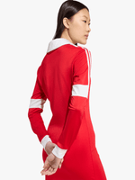 This dress from adidas is a playful spin on soccer style. Classic details include a ribbed V-neck and fold-down collar. The slim fit and soft piqué fabric hug your silhouette for a sleek, tailored look. Supplier style is (JY3526).