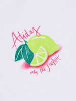 The adidas Originals Lemon Boyfriend Fit Tee in white is a must-have for casual days. Made from soft cotton, this tee features a relaxed, roomy fit for all-day comfort. Stand out with the vibrant lemon graphic on the front. Perfect for effortless style anytime. Supplier code_KK7305