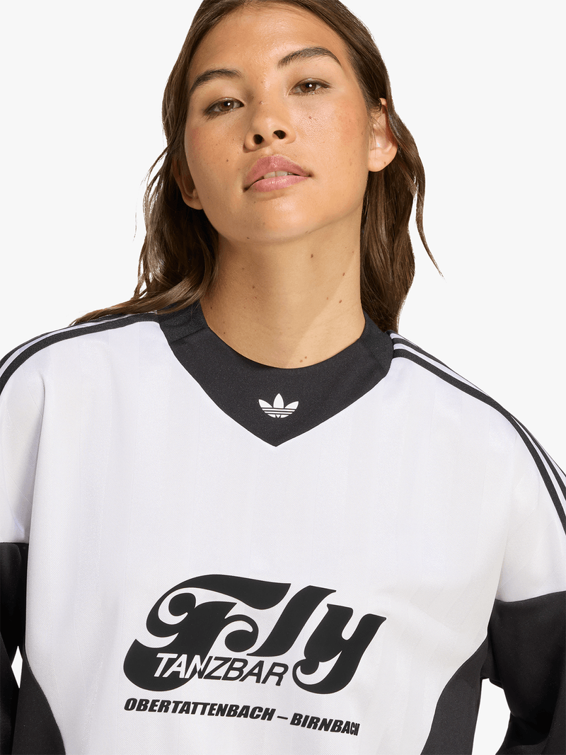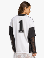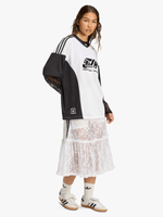 Who knew soccer style could be so chic? This adidas lace jersey combines design elements from the pitch with elegant lace. It cuts an oversized silhouette — for the maximum style impact. Wear it into the city or while dancing at a summer festival. Supplier style is (KD2297).