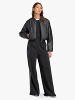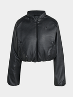 This bomber jacket from adidas has a trendy silhouette and a smooth pleather finish. Synthetic down fill adds warmth, making it a go-to for chilly days. Ribbed details give it a classic vibe. Whether you're headed out for the day or staying close to home, it has a laid-back look that pairs well with everything from joggers to jeans. Supplier style is (JX5332).