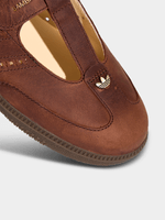 The Samba Jane shoes are here to redefine your style. With a nod to the classic Samba design, these shoes blend effortlessly into a trendy Mary Jane aesthetic. The open slip-on construction offers easy styling, while the serrated 3-Stripes adds a touch of heritage. Crafted with a leather upper and rubber outsole, these shoes provide durability and reliable traction. These adidas shoes are your go-to for style and comfort when you’re heading out for a casual day. They complement a range of looks with their modern design.(supplier Style:HP7130_ARC)